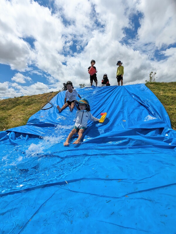 木工作、ウォータースライダー、芝滑り、七輪など。季節によって色々な遊びがあるよ。